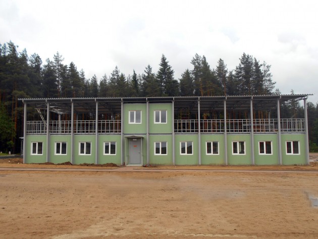Модульное здание на базе блок-контейнеров РосМодуль™.СТАНДАРТНЫЕ. Нижний этаж - административно-хозяйственные помещения. Верхний этаж - открытая обзорная площадка.