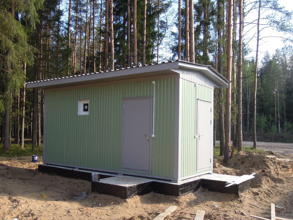 Мобильное здание туалета 14,7 м2 построено на собственном фундаменте заказчика.